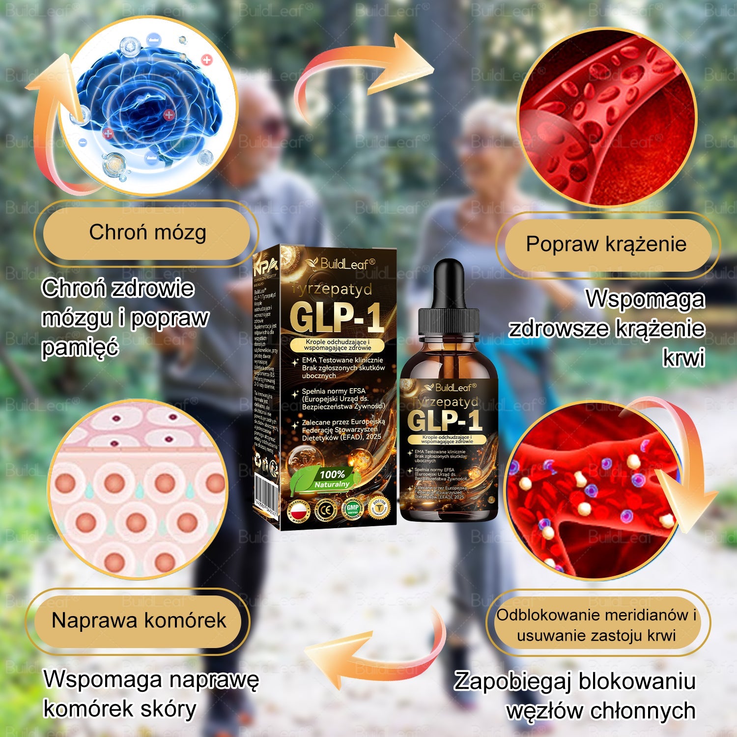 BuildLeaf® TIRZEPATIDE GLP-1 Ziołowy Płyn Doustny, opracowany przez zespół ponad 30 ekspertów z Departamentu Medycyny Metabolicznej Mayo Clinic po 20-letnich badaniach, łączy Metatrolide z potężnymi składnikami ziołowymi, aby przyspieszyć metabolizm, przyspieszyć spalanie tłuszczu oraz wspierać zdrowie układu trawiennego i limfatycznego. Zatwierdzony przez URPL pod względem bezpieczeństwa i skuteczności, ten płyn doustny oferuje poparte nauką rozwiązanie na odchudzanie i ogólne zdrowie..
